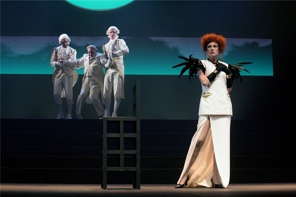 Году 2025-му потребовалась новая «Тень». И юбилей не единственная тому причина. Думается, что и не главная. Если помнить, что для петербургского Театра Комедии каждая следующая постановка этой пьесы становится сейсмограммой, очень точно отражающей очередной тектонический сдвиг в нашей жизни. На этот раз Татьяна Казакова снизила градус сказочности и даже отчасти пожертвовала романтической подоплёкой, чтобы трактовка характеров получилась максимально чёткой. Чтобы герои Шварца, придуманные три четверти столетия тому назад, заняли подобающие им места в веке нынешнем. Худрук Театра Комедии никогда не забывает, что сюда зритель приходит в надежде получше разобраться в том, что, собственно, происходит в мире и ближайших его окрестностях. А они, погружённые в зловещий полумрак, залиты призрачным светом суперлуния (отличная работа художника по свету Дениса Солнцева и видеографа Максима Юрака). Бурлит маркетплейс (простите, рыночная площадь), где можно купить и продать что угодно – от свежайших ядов до заплесневелых сплетен. Вдохновенно самопиарится то ли журналист, то ли шоумен Цезарь Борджиа (азартно хамелеонистый Владислав Несин) в прикиде а-ля тяжёлый люкс. Сегодня «наследников» сего персонажа с лёгкостью узнаешь по апломбу: «Я хочу власти, почета, и мне ужасно не хватает денег!» Хозяин гостиницы Пьетро, людоед с повадками фельдфебеля (з.а. России Николай Смирнов) звенит на весь город шпорами, чтобы, не дай бог не услышать о себе то, чего ему вовсе слышать не хочется. Марионеточные министры – первый (Сергей Романюк) и финансов (Виталий Куклин) – со знанием дела планируют расправу над человеком посредством дружбы, попутно обсуждая тонкости движения мировых золотовалютных потоков. Юлия Джули (обворожительно манкая Алиса Кондратьева), та самая андерсеновская девочка, что наступила на хлеб, сделала карьеру поп-звезды и теперь изо всех сил старается замаскировать сверкающими блёстками неизбывный страх выйти в тираж и выпасть из «круга настоящих людей». Круг этот узок, составляющие его господа страшно далеки от… Да, от всего они далеки, в сущности. Ничего, кроме денег и власти их не интересует. Диагноз Доктора (Андрей Толшин) безжалостен и точен: «Сытость в острой форме». В общем, королевство как королевство. Ничего сказочного.
